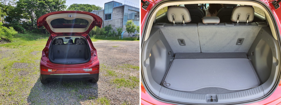 볼트 EV 신형 실내 공간은 소형차다운 안락함이 있었고 1열은 의외로 여유롭고 쾌적했다. 키가 크지 않고 다리도 긴 편은 아니어서 다른 경차나 소형차를 탈 때 1열이 크게 불편하지는 않았는데, 볼트 EV는 생각보다 더 편안했다.