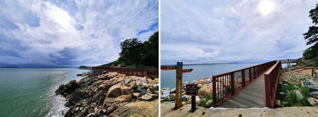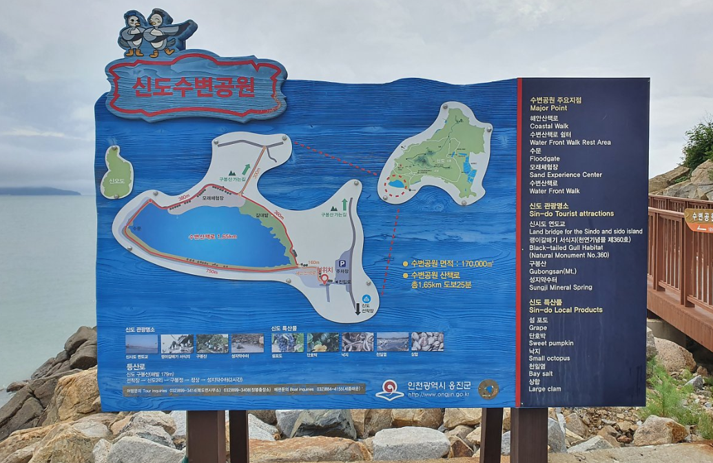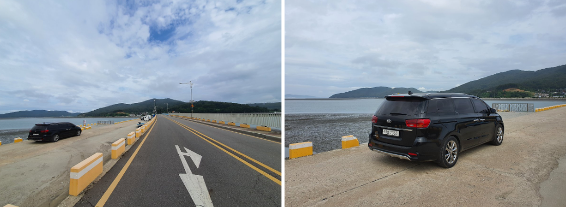 배에서 내려 이동하는 신도와 시도, 모도는 다리로 연결이 되어 있는데, 물놀이와 갯벌체험이 가능한 해수욕장으로 이동하는 거리도 약 5km 내외라 15분정도만 이동하면 분위기 좋은 해변가에 도착할 수 있었다.