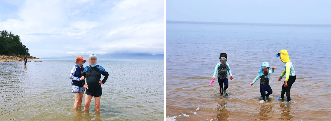 10시쯤 도착한 해수욕장에는 바닷물이 보이지 않았다. 물이 오후 2시쯤에 차기 때문에 그 전에는 해수욕보다는 바닷물이 빠진 갯벌에서 조개와 꽃개를 잡는 체험을 하며 시간을 보내면 됐다.
