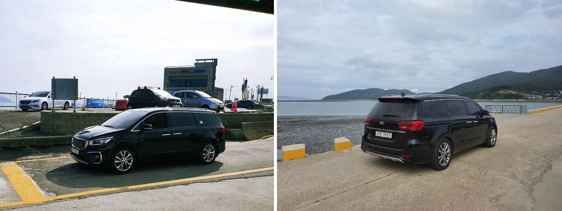 이른 아침 롯데렌터카에서 렌트한 카니발을 타고 7명의 가족이 삼목선착장으로 출발했다. 배 시간이 매시간 10분에 있어서 9시 10분 배를 목표로 집에서 오전 7시 30분쯤 출발했다.