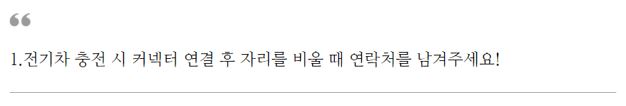 단속 권한도 현행 법률상 광역시·도에는 있지만, 기초자치단체에는 단속 권한이 없어 단속의지도 없어 보입니다. 결국 단속을 목적으로 하지도 않고, 과태료 부과가 가능한 주차구역이 적다는 점에서 전기차 공공 에티켓이 더욱 중요한 상황입니다.