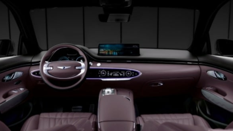 GV70의 내장 디자인은 운전자 중심의 실내 구조로 설계됐다. 특히 비행기 날개의 유선형(에어로다이나믹) 조형에서 영감을 받은 실내 디자인은 유니크한 타원형 요소를 사용해 볼륨감을 살렸고, 신개념 무드조명을 선보였다.