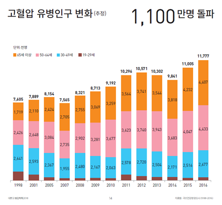 하지만 최근 우리나라 고혈압 유병인구는 계속 증가하고 있고, 질병관리본부 조사에 따르면 대한민국 30대 이상 성인 10명 중 3명이 고혈압이라고 한다. 그렇다면 성인 3명 중 1명이 고혈압일 수 있다는 얘긴데, 이미 30대를 지나 40대에 있는 에디터는 고혈압 위험성과 심각성이 피부에 더욱 와 닿았다.