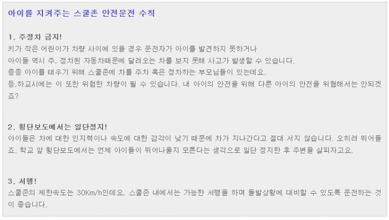 소중한 내 아이와 우리의 아이가 즐겁고 안전하게 학교를 다닐 수 있도록 모든 운전자들이 교통법규 준수하는 길만이 우리 아이들을 지켜줄 수 있는 유일한 방법이다.