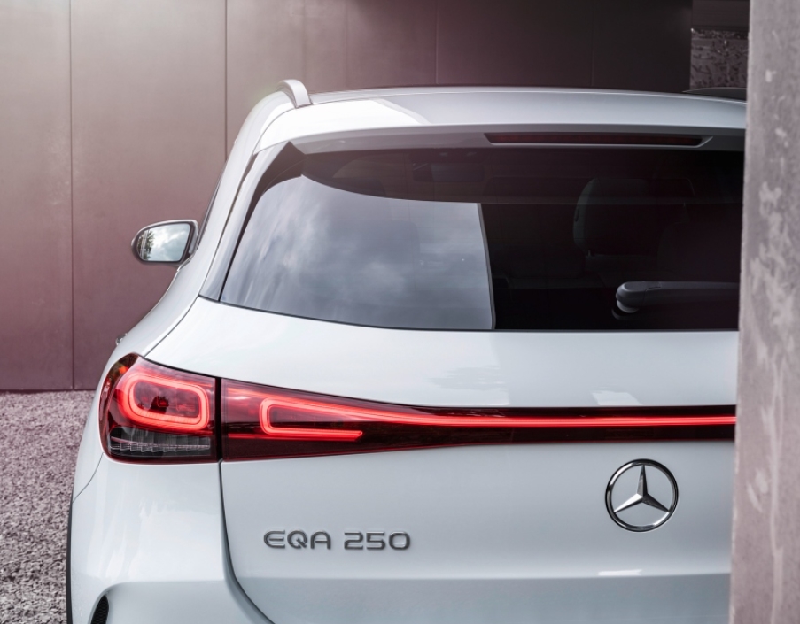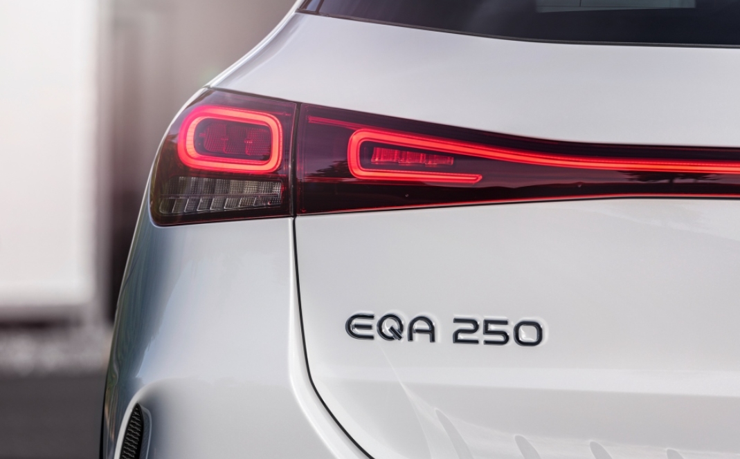 전면부를 가로지르는 광섬유 스트립은 풀 LED 헤드램프의 주간 주행등과 이어지며, 주간은 물론 야간에도 시인성을 높여주고, 보닛의 파워돔, 차체의 도드라진 근육질의 숄더 라인, 전천후 보호 클래딩(cladding)은 더 뉴 EQA의 존재감을 강조한다. 리어 라이트는 멀티 섹션 디자인을 적용해 트렁크 입구가 넓어지며 적재가 용이해지는 동시에 후면이 넓어 보이는 효과를 준다.