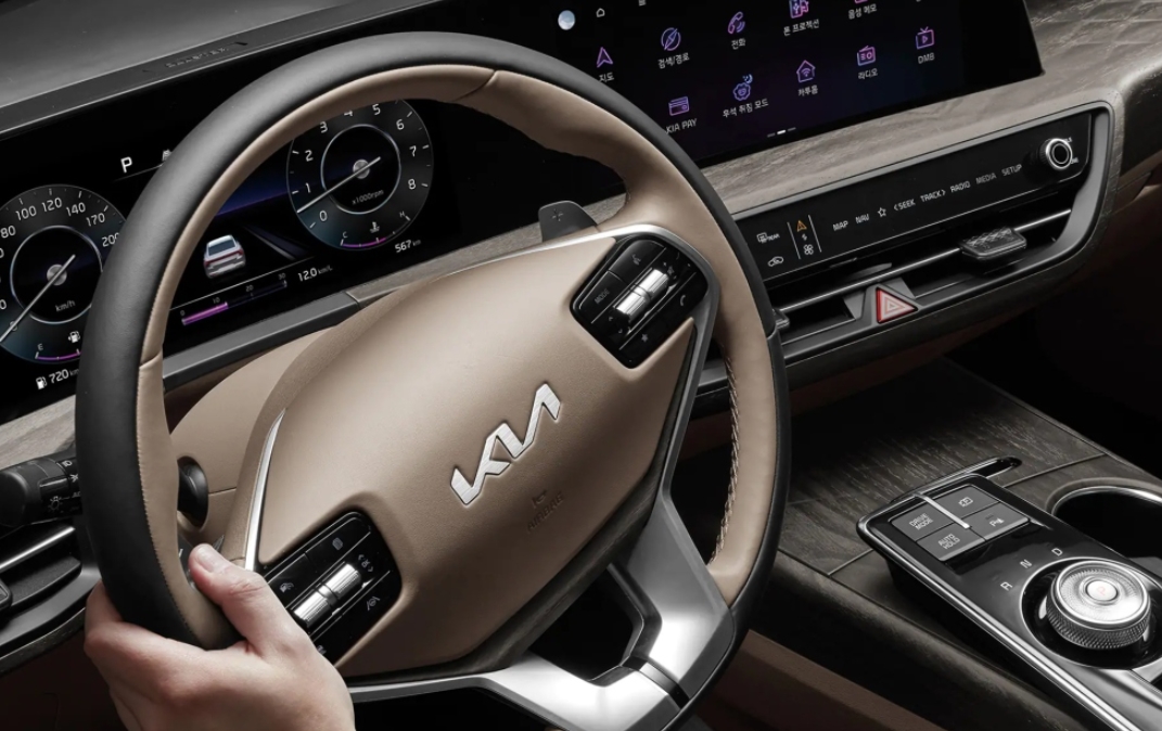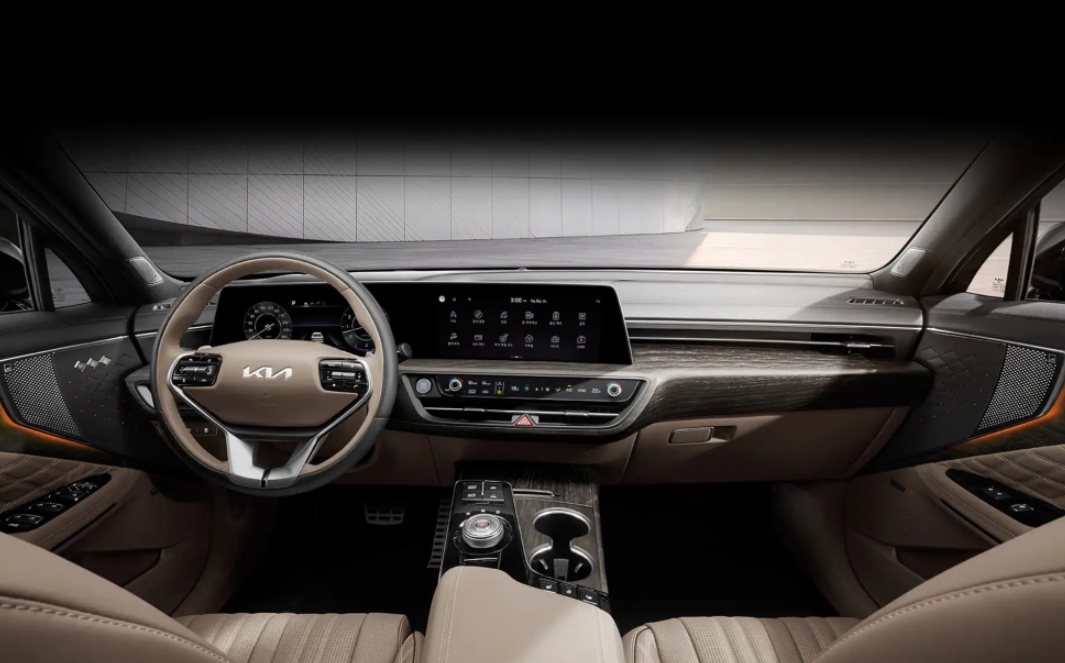 실내에서 가장 눈에 띄는 특징은 12.3인치 커브드 디스플레이가 두 개로 이어진 ‘파노라믹 커브드 디스플레이’로 K8에 처음 적용됐다. 파노라믹 커브드 디스플레이는 차량 내 간편 결제 ‘기아 페이’ 등 다양한 정보를 지원하며 운전석 계기반과 중앙 인포테인먼트 시스템이 부드럽게 이어져 간결하면서도 혁신적인 이미지를 구현했다.