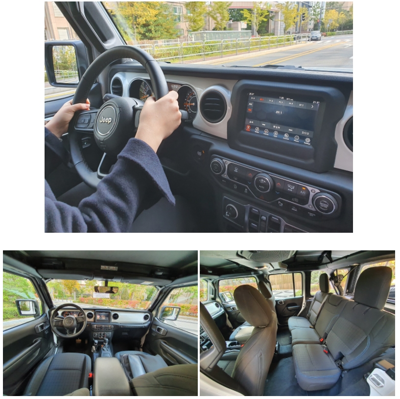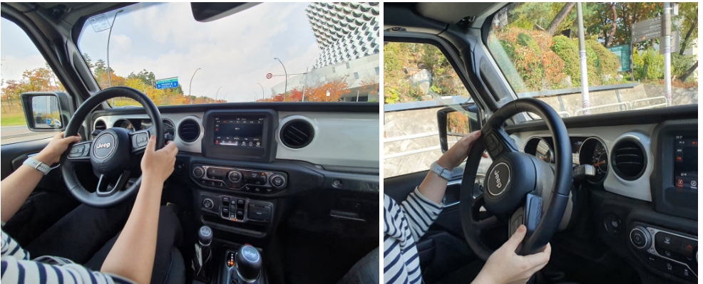 하지만 초반의 민망함을 극복하고 나면 시야가 좋아 운전 시인성은 좋았다. 올 뉴 랭글러 아일랜드 에디션은 I4 2.0L 가솔린 터보 엔진을 사용하는데 도심 저속 주행에서는 소음과 진동이 조금 느껴지는 편이지만 중고속 주행 시에는 개선된다.