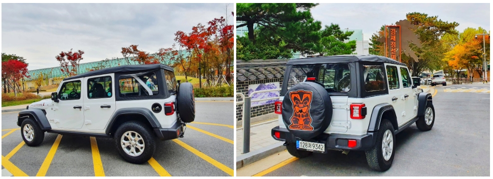 여기에 전후면의 기존 할로겐 램프를 랭글러 루비콘, 오버랜드와 같은 풀 LED 램프로 업그레이드 해 주/야간 주행 시 전면 주행 시인성과 안전성을 높였다.