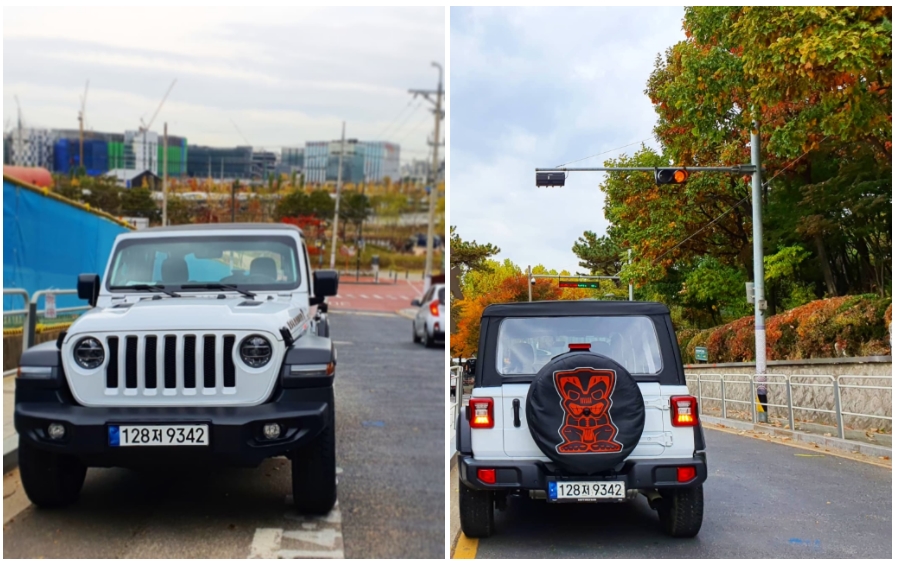 시승하기 위해 만난 랭글러 아일랜더 에디션의 첫 인상은, 오프로드 주행이 아니라 미안한 마음이 생길 정도로, 시내 분위기와 사뭇 이질적이고 낯설었다. 시승한 모델은 브라이트 화이트(Bright White) 컬러였는데 여기 도심보다는 산이나 바다 배경이 더 잘 어울릴법한 느낌이었다.