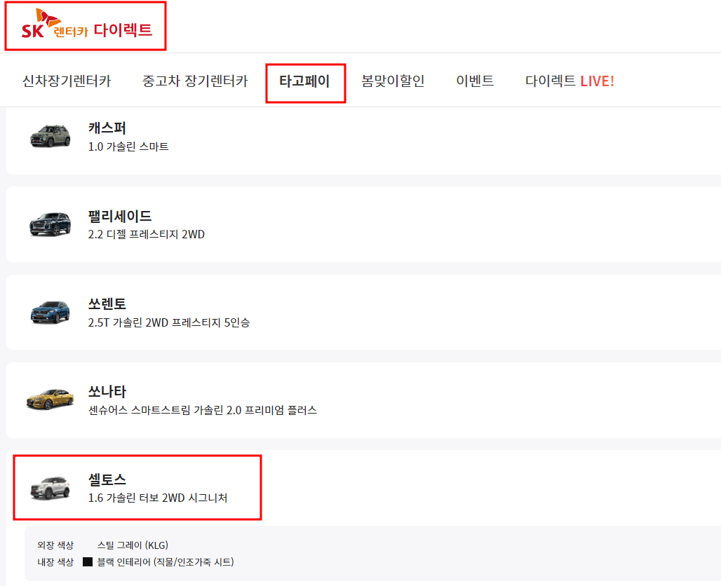 세컨카 셀토스 필요한 사람 주목! 카셰어링과 장기렌터카 장점 결합한 SK렌터카 다이렉트 타고페이 추천