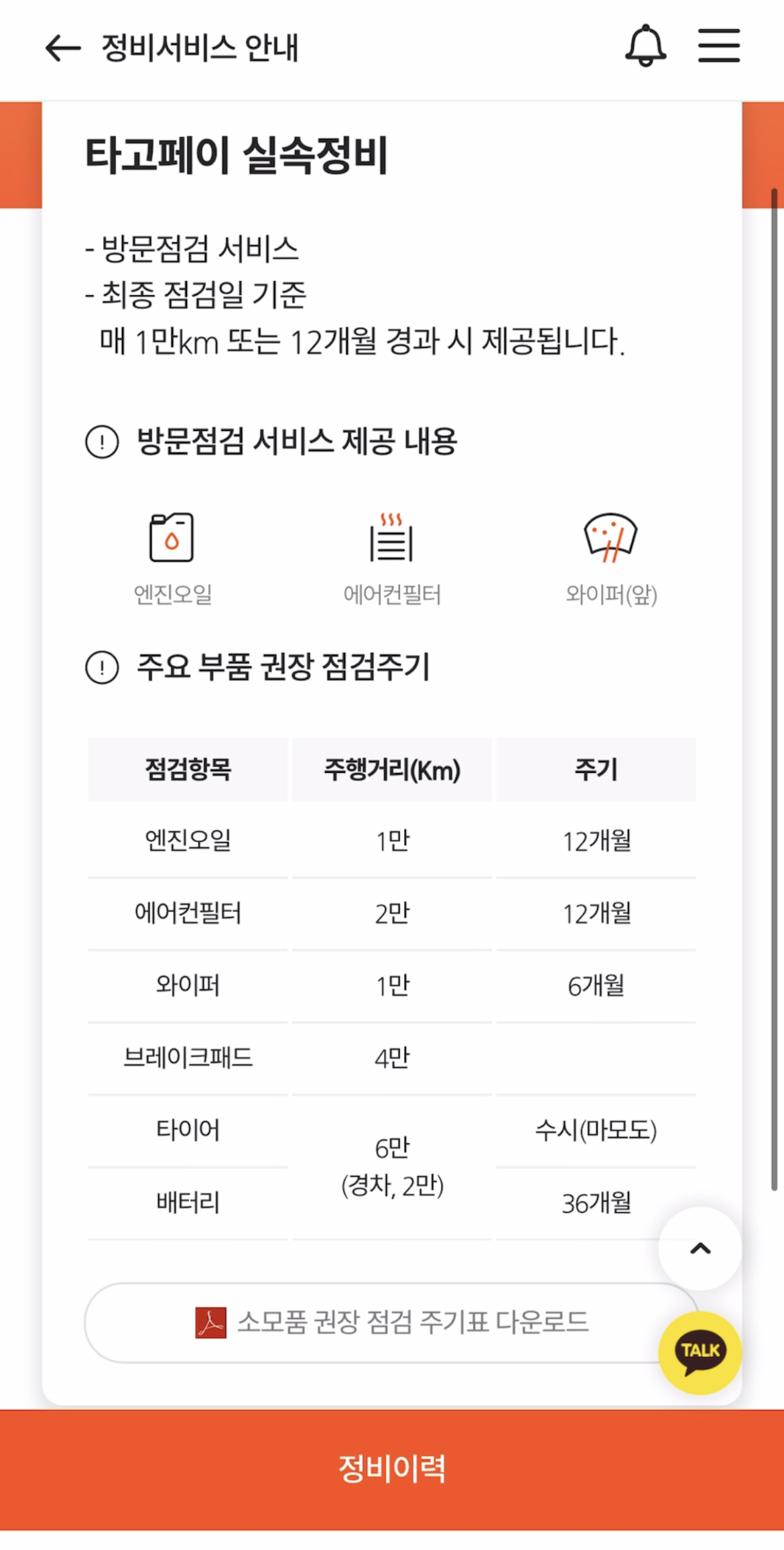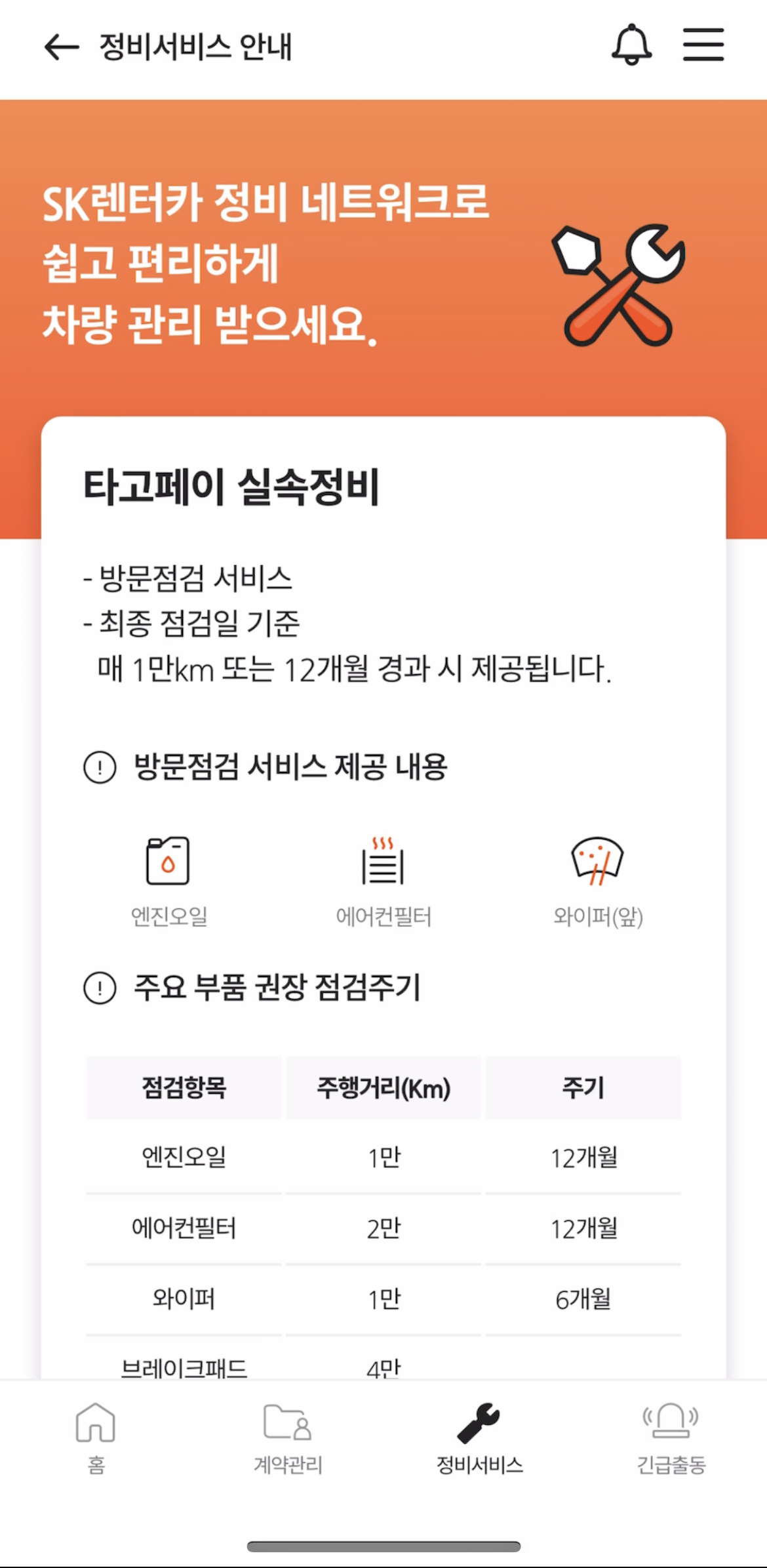 이런 시스템이 좋은 점은 주행거리와 비용 계산에만 있는 것이 아니라, 스마트케어 IoT 단말기에 수집된 정보를 기반으로 방문 점검을 정기적으로 진행한다는 점이 더 큰 장점이라고 했다. 계약일 또는 마지막 점검일 기준 매 10,000km 또는 만 12개월 경과 시 정기점검을 기본적으로 하고, 차량의 주요 소모품 관리까지 간편하게 직접 해준다고 하니 차량 관리에 부담을 느끼는 나같은 여성오너들에게는 큰 짐을 덜 수 있는 요소이다.
