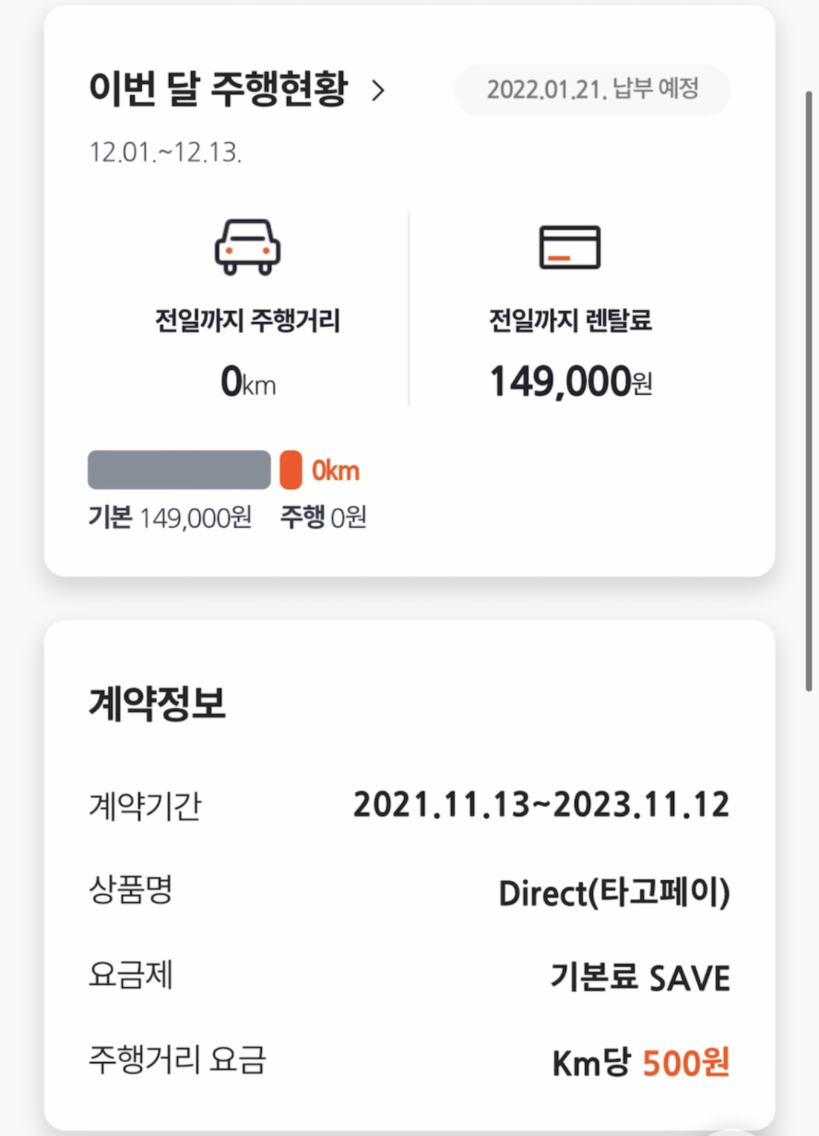 그래서, 확인해본 타고페이 계약조건은 생각 이상으로 파격적였다. 보증금 필요 없이, 내가 탄 만큼만 내는 렌탈료만으로 차량을 이용할 수 있었다. 대신에 24개월의 계약기간이 존재하는데, 1년(12개월)을 이용한 후에는 위약금을 면제해주는 반납기회가 1회 제공된다고 하니 정말 소비자(이용자) 중심의 계약조건였다.