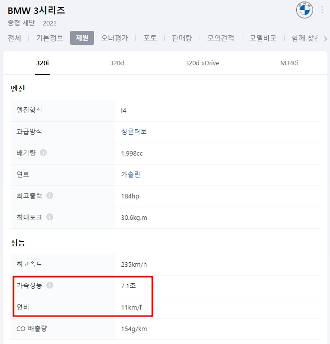 구매를 고려한 가격대가 5천만원 중반대였으므로, 수입전기차 폴스타 2와 가솔린 모델인 BMW 3시리즈를 비교하면 가격대도 비슷하니 경제성을 직접적으로 알 수 있을 거 같다.