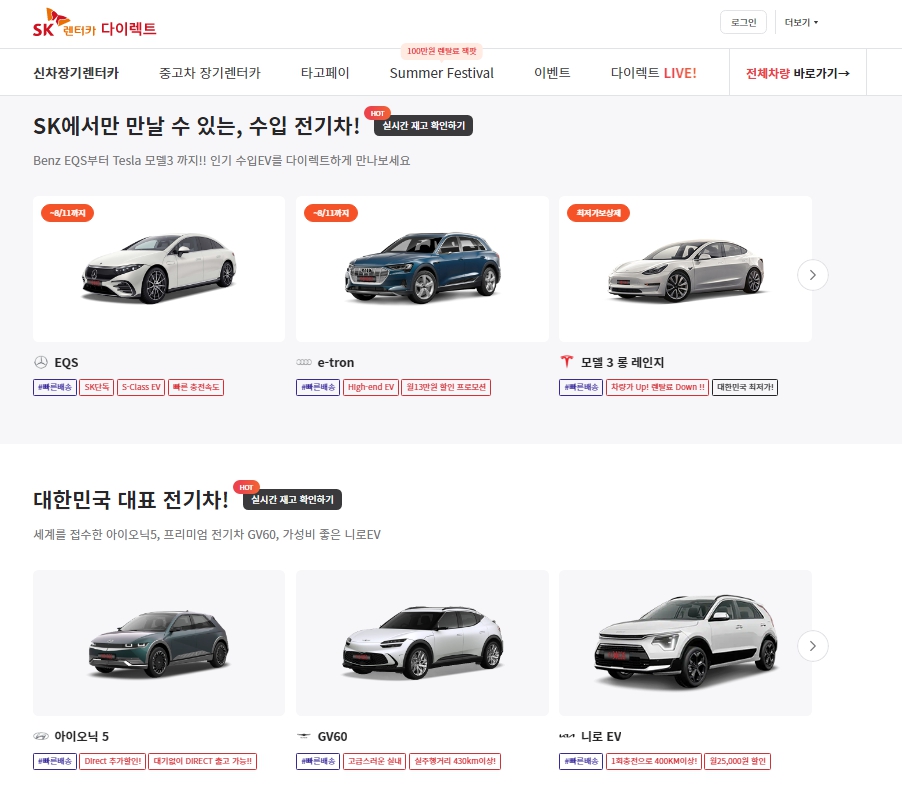 그 방법은 전기차 찐재고를 확보하여 언제든지 7일 이내에 차량 출고가 가능한 'SK렌터카 다이렉트 전기차 장기렌트'를 추천한다.