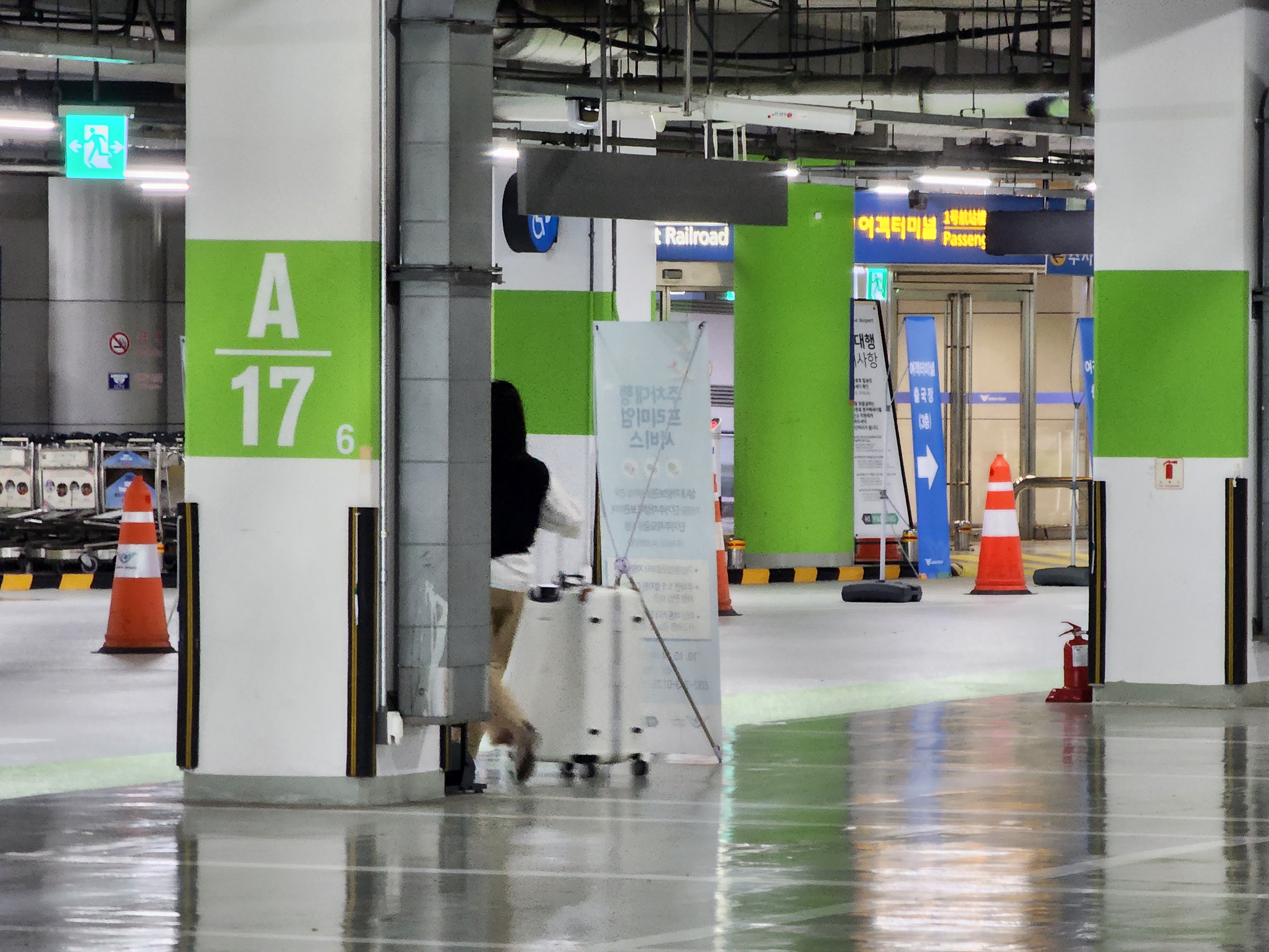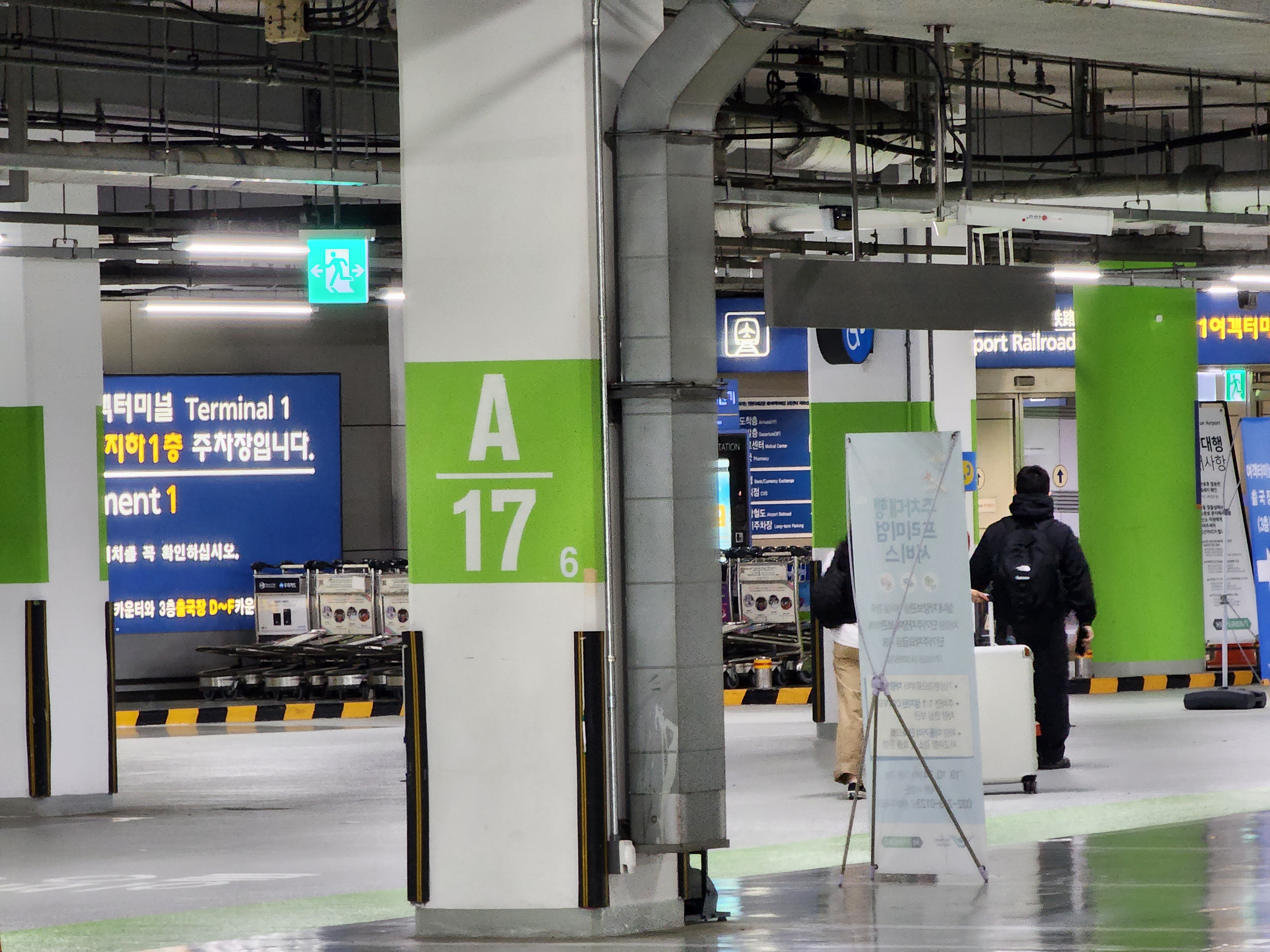 ① 출국 시 차량은 공항 진입도로 내 안내판에 따라 단기주차장(지하1층) 표시가 되어있는 차선을 따라서 이동하면 안내요원의 안내 지시에 따라 접수장(지하1층 A구역)으로 이동하면 됩니다.