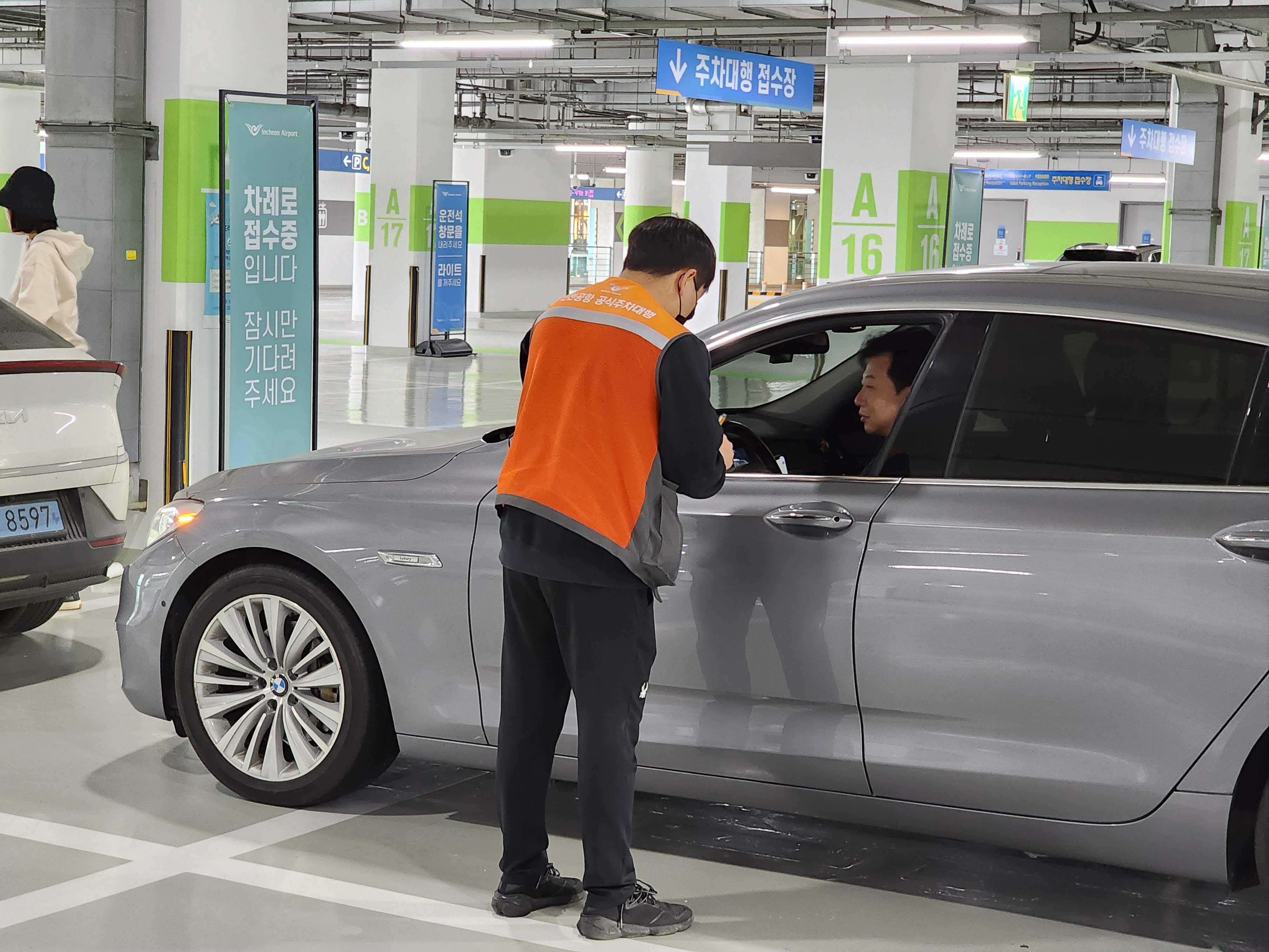 인천공항 제1여객터미널 주차대행 업체는 투루파킹으로 접수요원은 역시나 브랜드색깔인 주황색 유니폼을 착용하고 있습니다. 차량은 제1 여객터미널 단기주차장 지하 1층 A구역에서 접수하며, 차량은 장기주차장 및 외각주차장(실외주차장)에 보관됩니다.