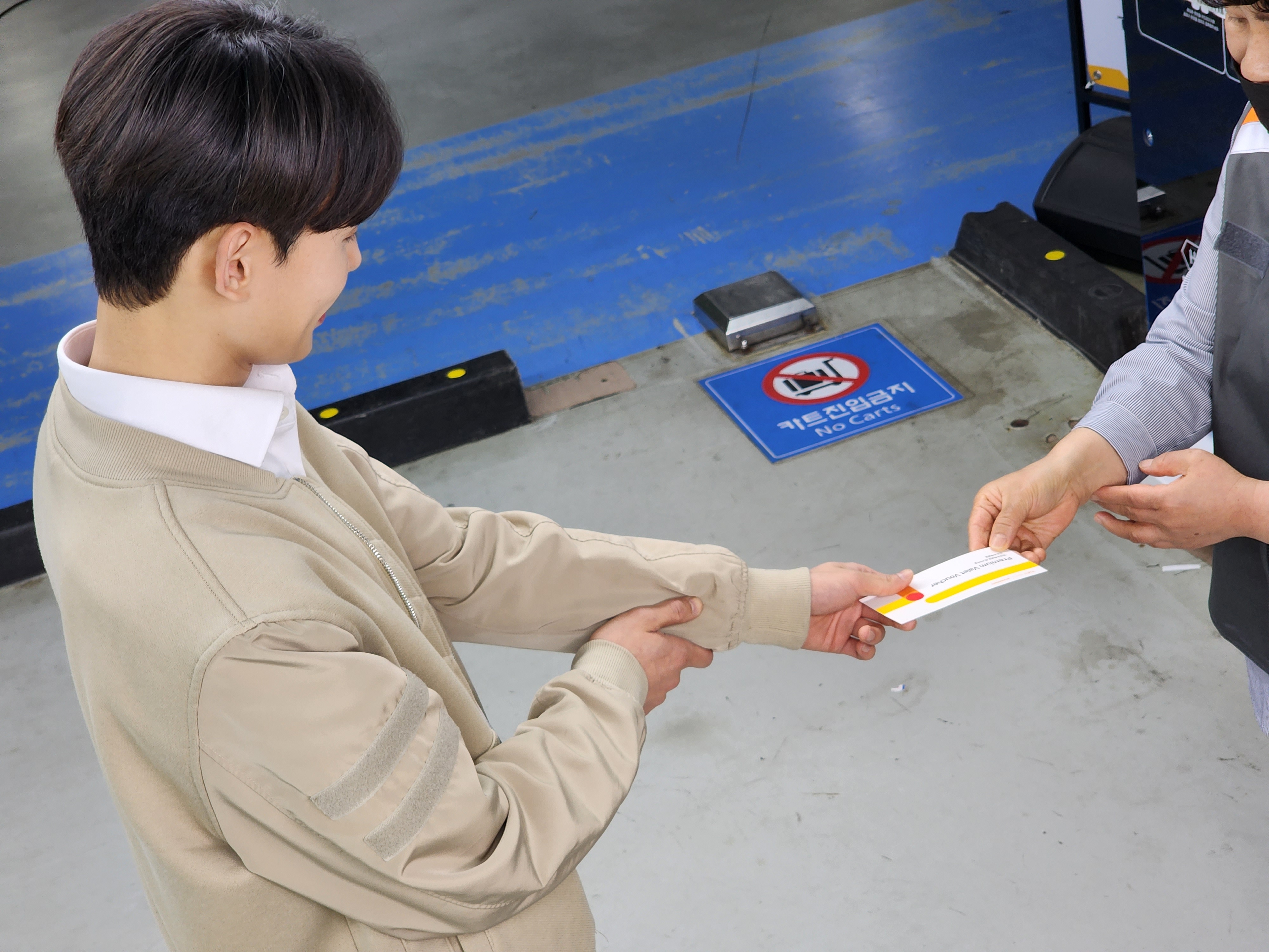 ② 안내에 따라 접수장에 들어오면 예약된 차량을 사전에 안내원이 확인하여 차량인계 및 접수증을 교부합니다. 운전자는 차량에서 하차하여 본인의 짐만 챙겨 공항 출국장으로 이동하면 됩니다.