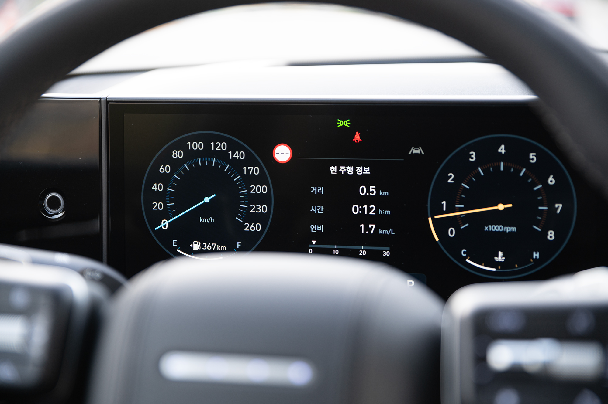 스티어링 휠로 이동한 컬럼타입 전자식 변속 레버는 변속 조작 방향과 구동 방향을 일치시켜 직관적인 조작이 가능하도록 했고, 이로 인해 여유로워진 콘솔부는 실내 공간 활용성을 높여준다. 실제로 운전자 중심의 인테리어가 적용되어 운전에 집중하기 좋은 환경을 갖췄다.