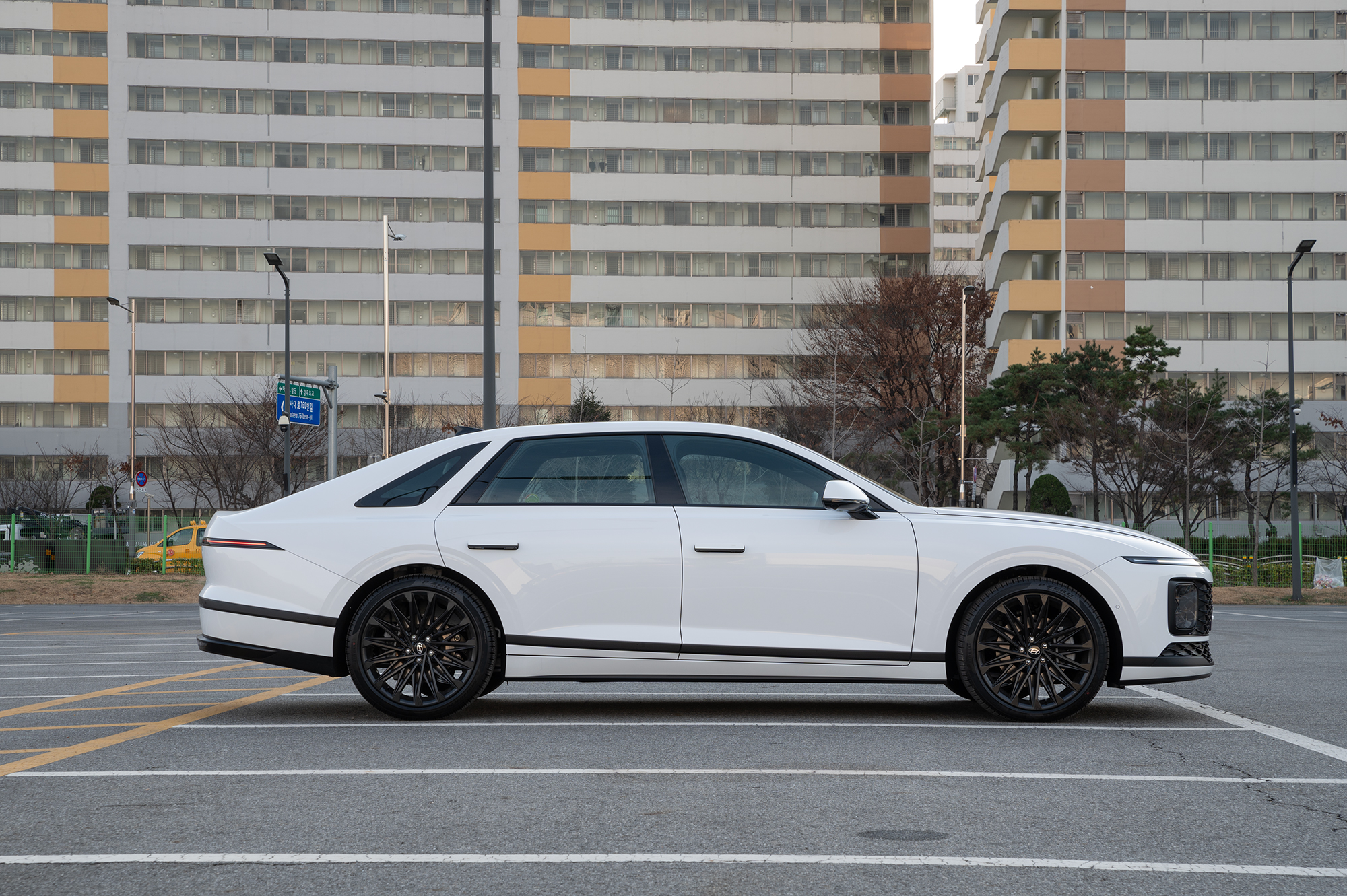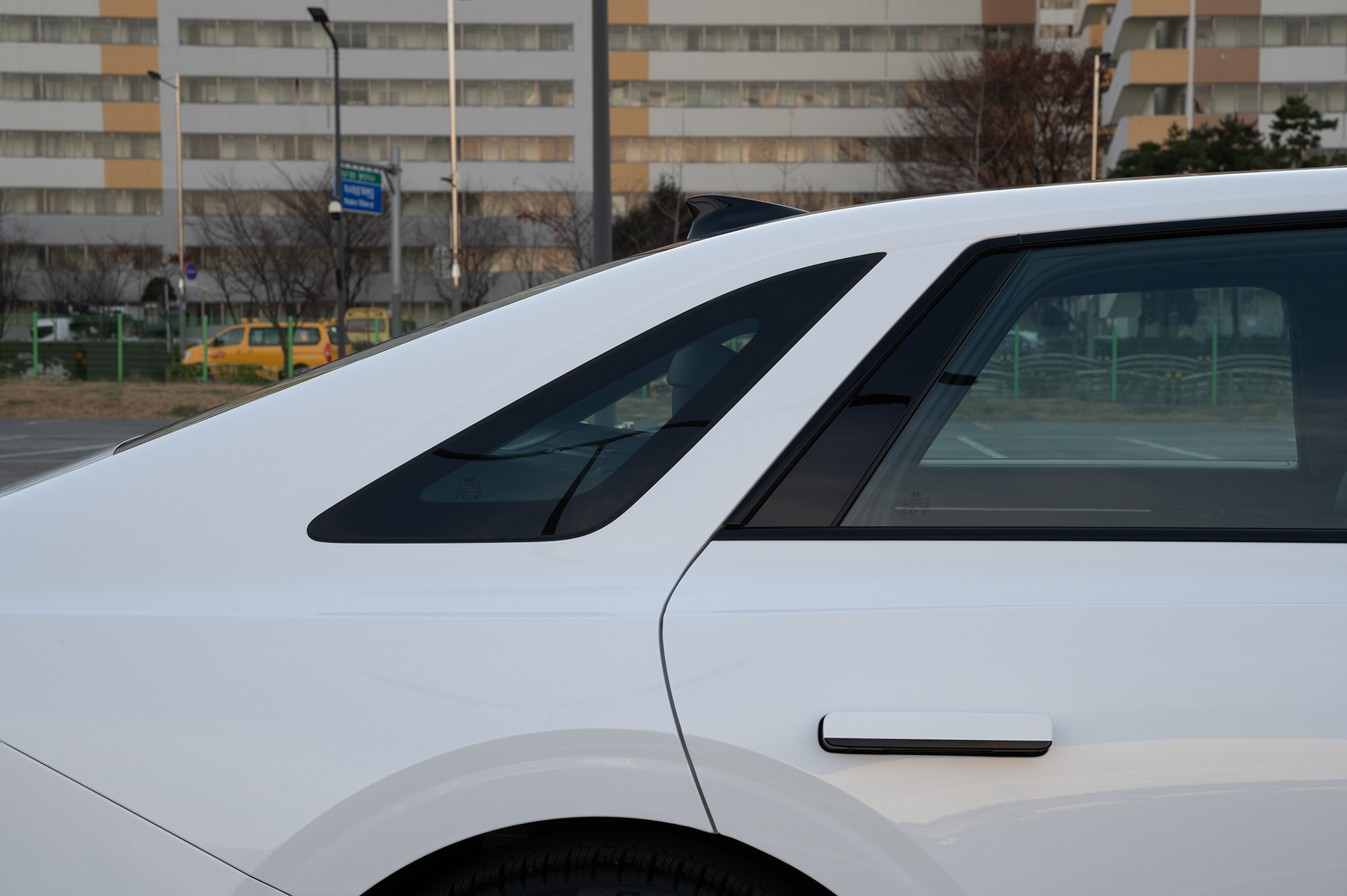 특히, 프레임리스 도어와 플러시 도어 핸들을 결합한 수평적 원라인의 사이드 바디로 우아한 대형세단의 기품을 발산한다.