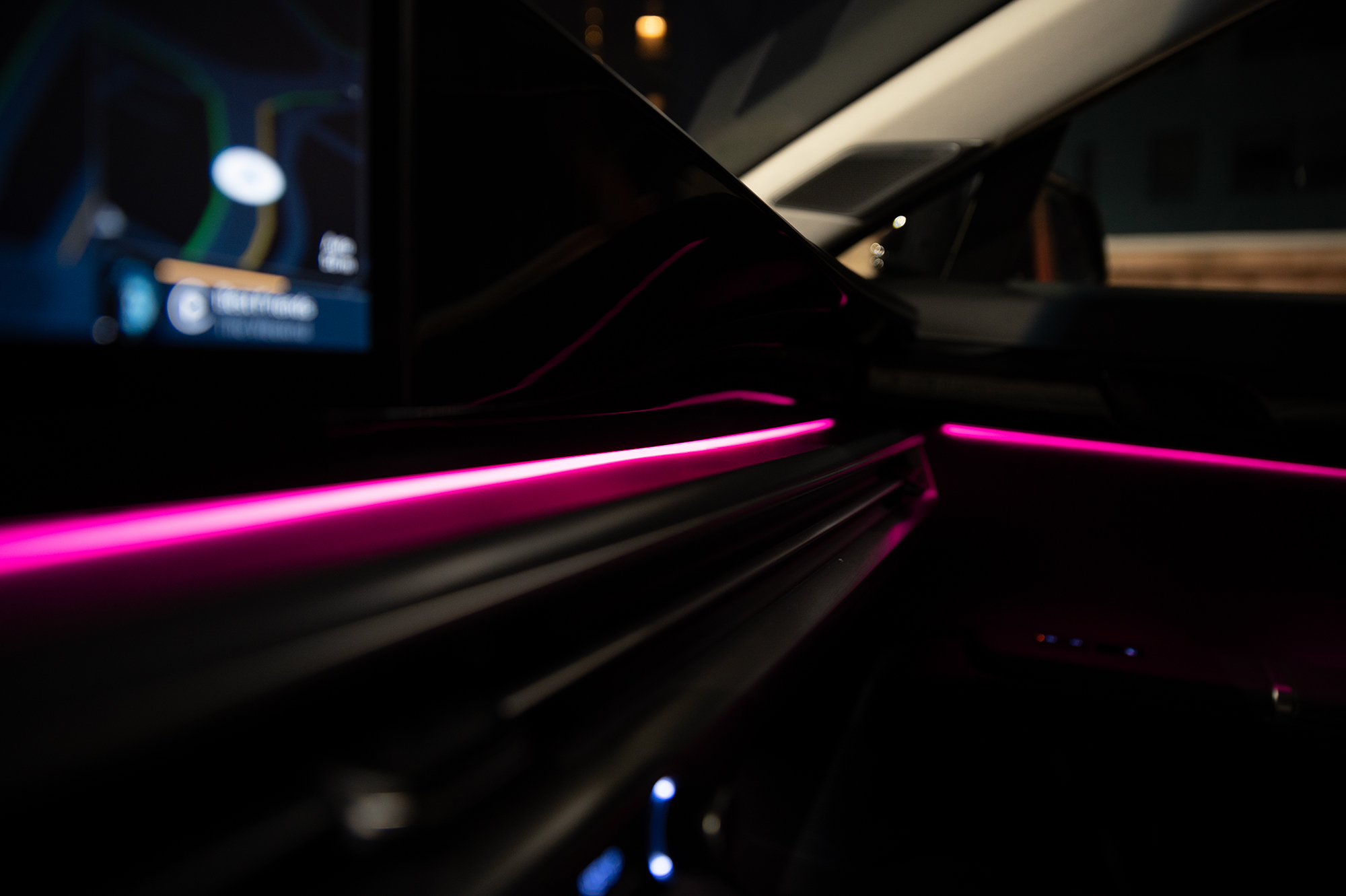 또한 크래시패드 가니시부에 적용된 ‘인터랙티브 앰비언트 무드램프’는 드라이브모드, 음성인식, 웰컴∙굿바이 시퀀스 등 각 시나리오 별로 다양한 색을 발산해 마치 탑승객과 차가 항상 연결되어 있는 느낌을 더해주고 한층 여유로운 주행 경험을 제공한다.