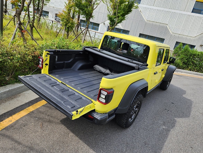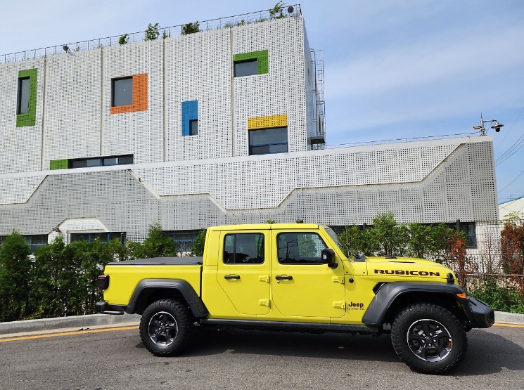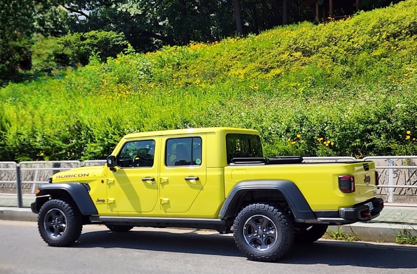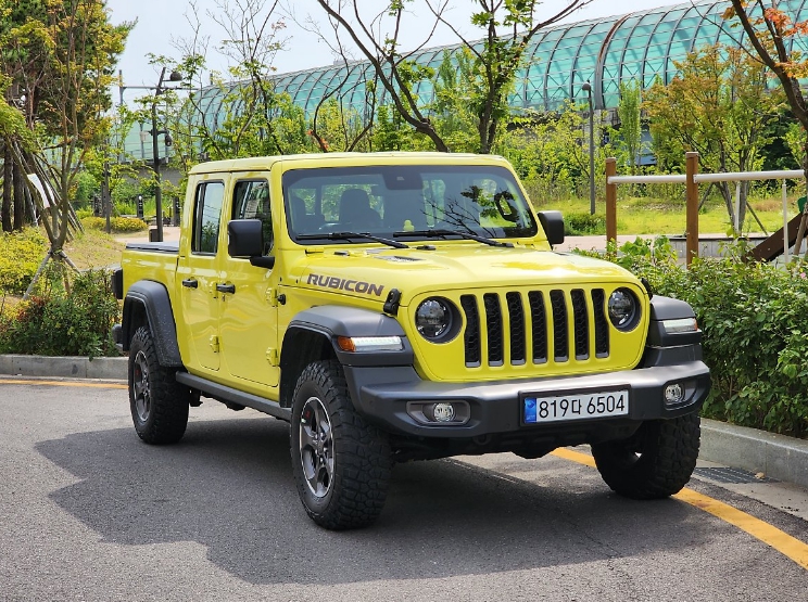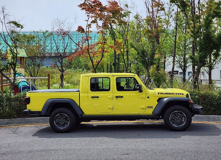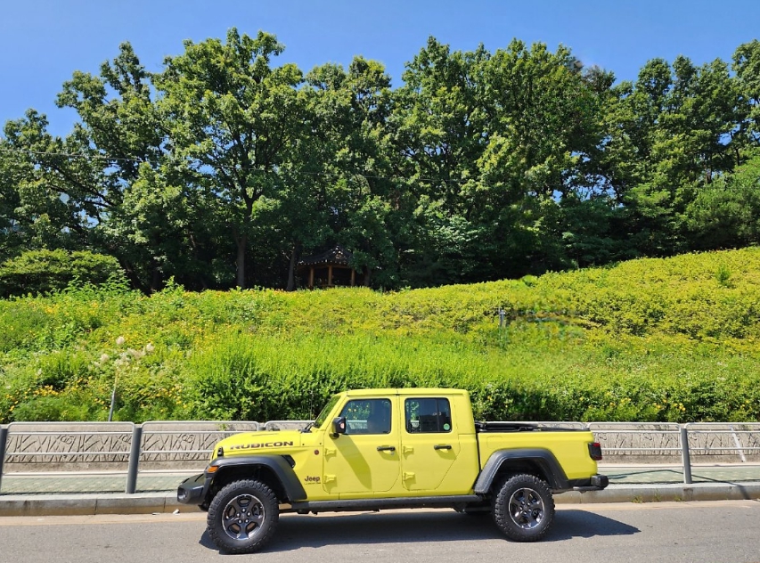 실제 만나본 시승차의 색상은 옅은 노랑색이 은은하지만 반짝거리는 형광빛이 뜨거운 해변가에 있다면 지프 글래디에이터가 모든 시선을 모으는 반짝이는 스타가 될 멋스러운 색상였다.