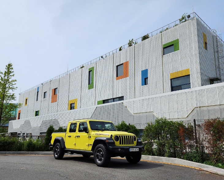 지프 글래디에이터만으로도 주변의 시선을 받을 모델인데 색상까지 반짝이는 노랑빛깔이라니 튀는 듯 튀지않는 은은함이 매력적이다. 아이들은 하이 벨로시티 색상의 글래디에이터를 보면서 놀이동산 놀이기구를 타듯 기분좋게 시승을 함께 즐겼다.