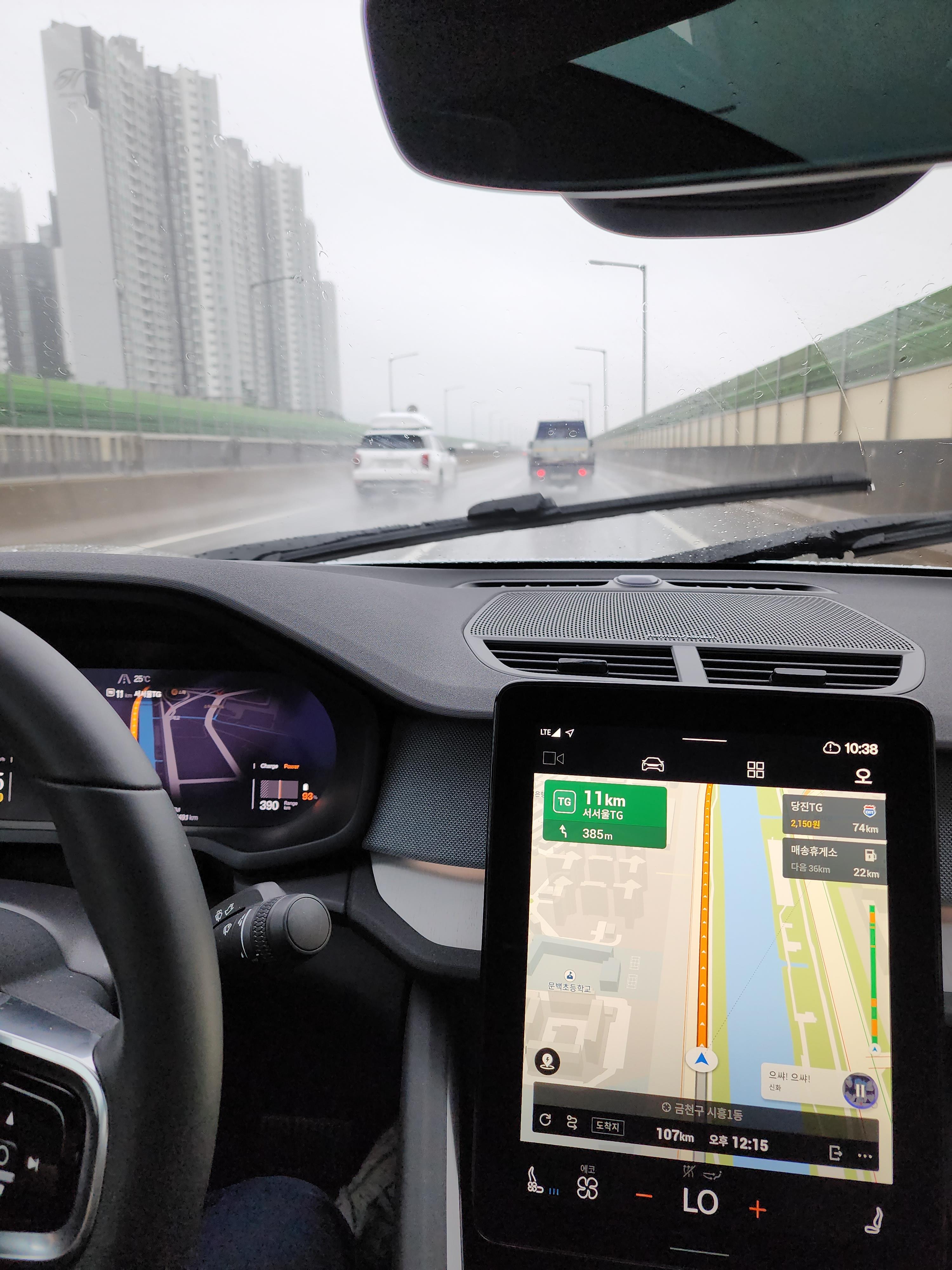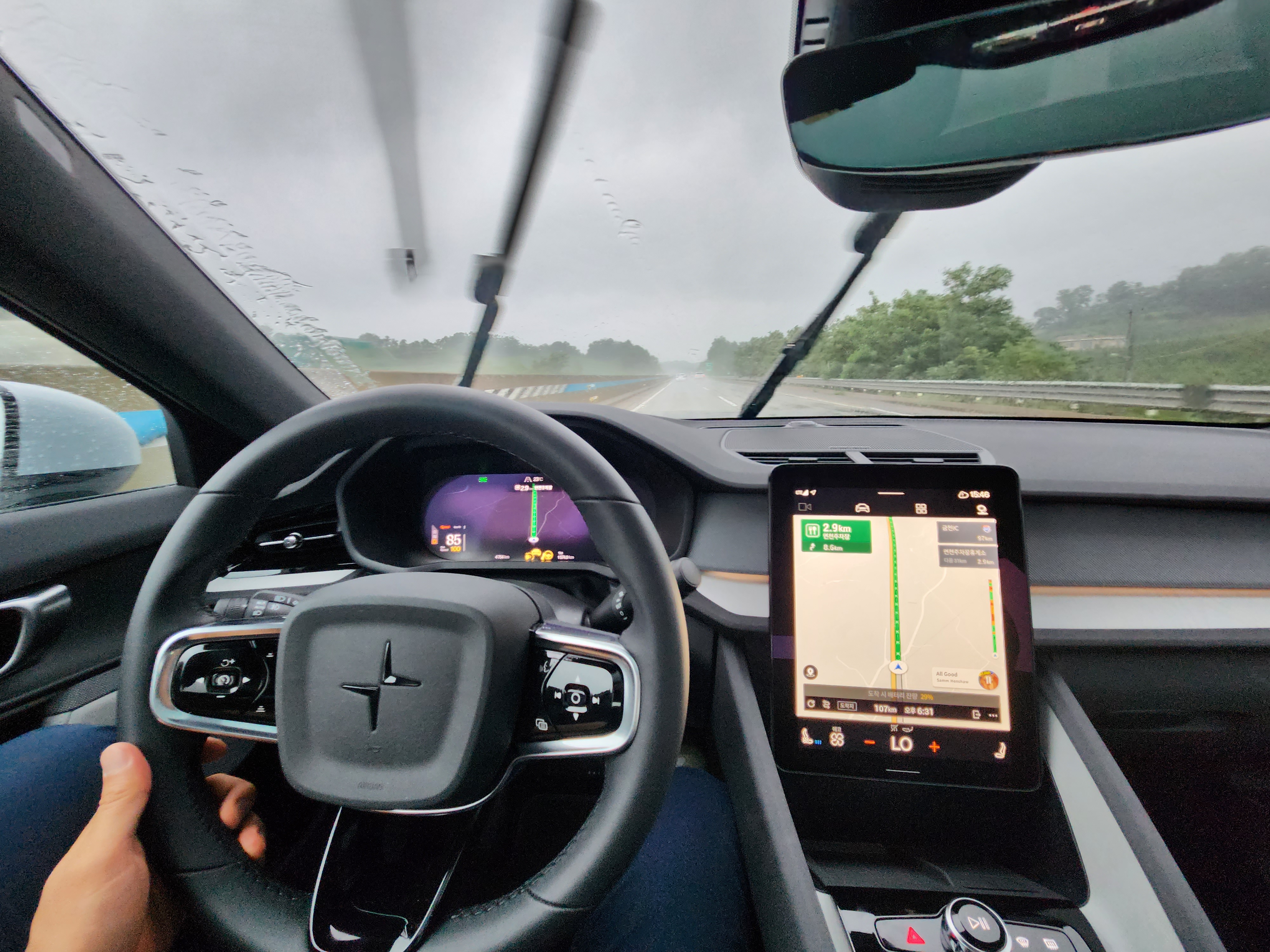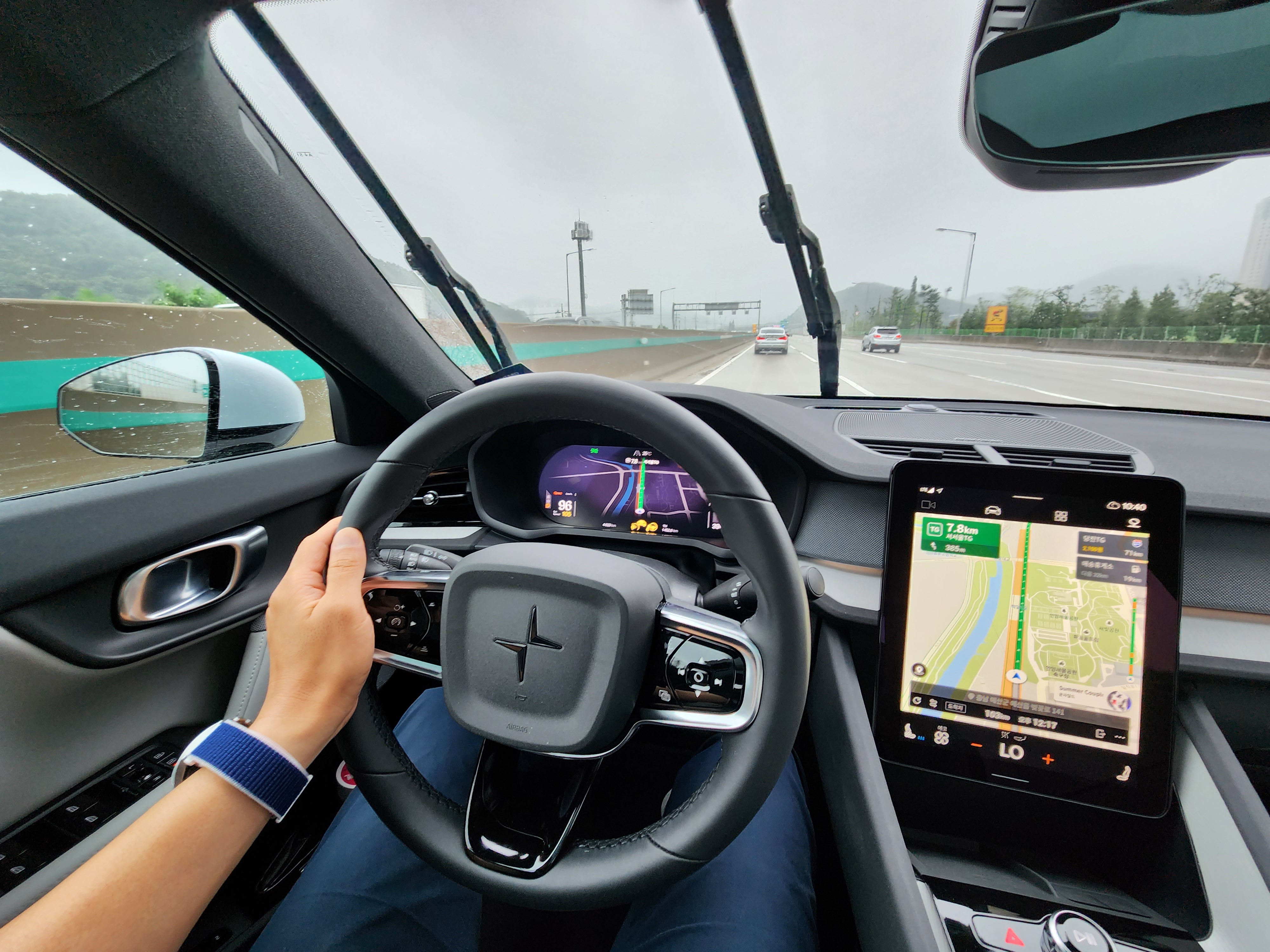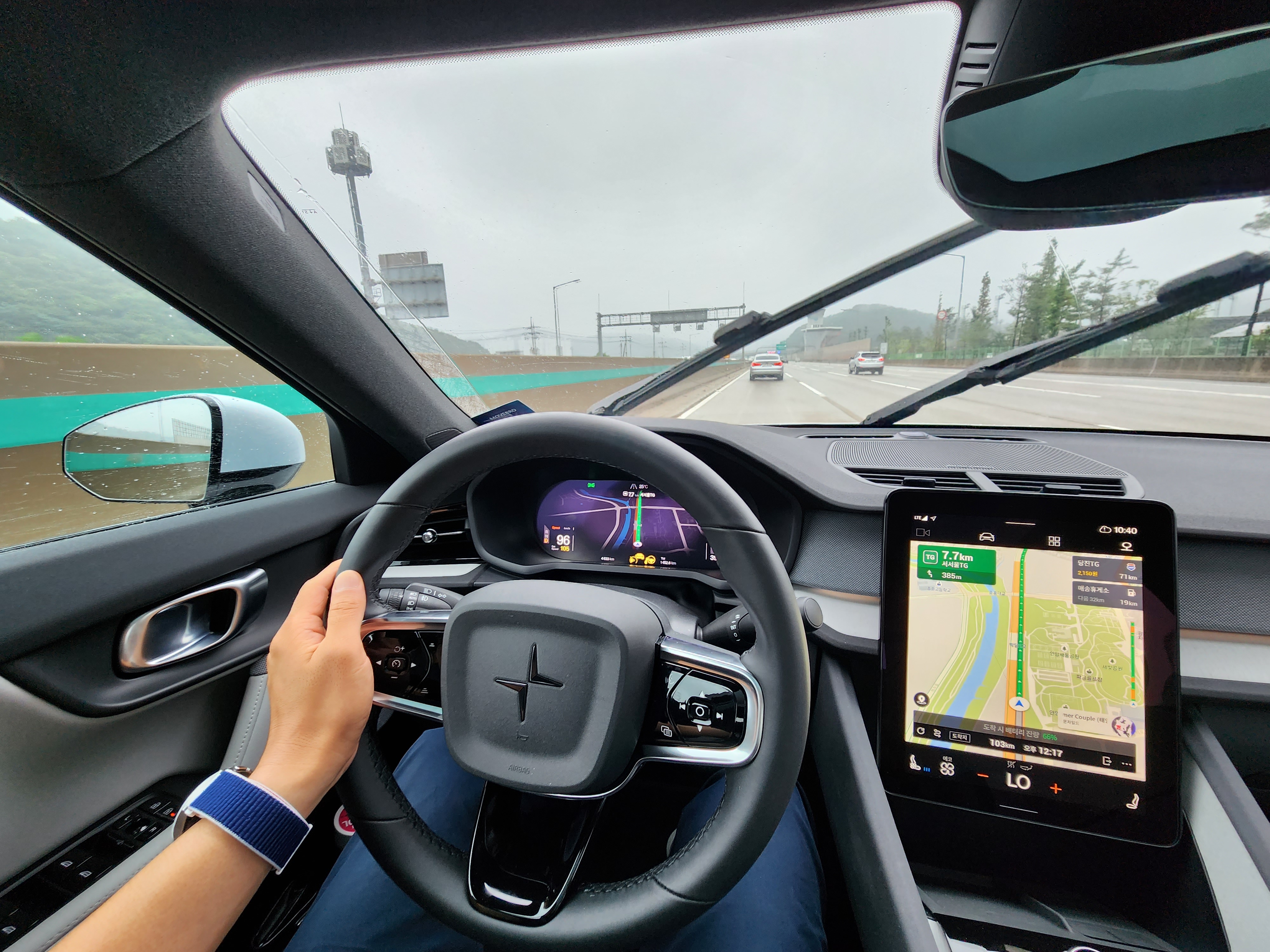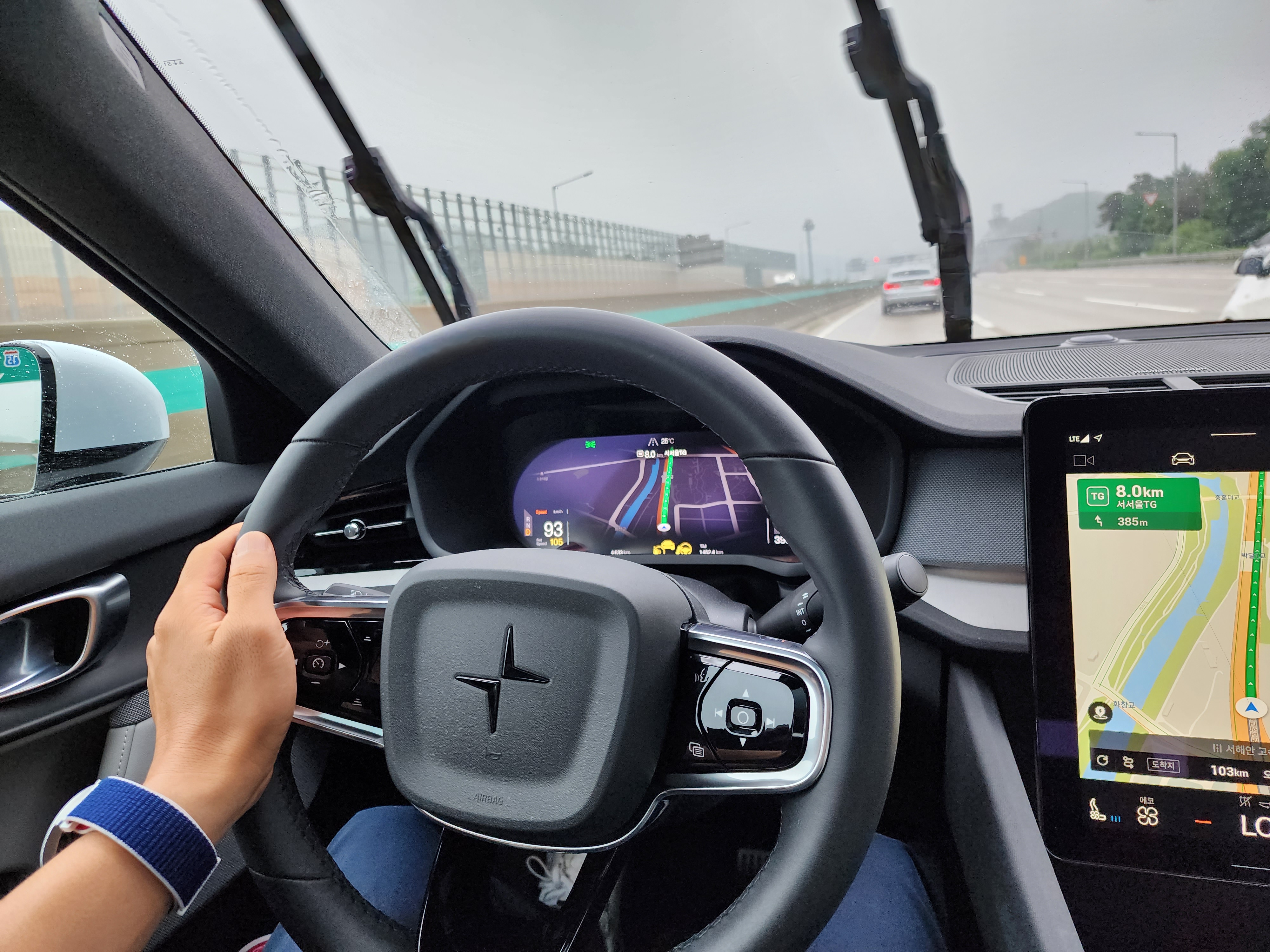 다음으로 전기차 폴스타 2의 주행감을 소개해보겠다. 우선 시승한 모델이 듀얼모터 모델이다보니 시원시원했다. 비오는 날에도 거침없었고, 맑은 날에는 시원하게 질주했다.