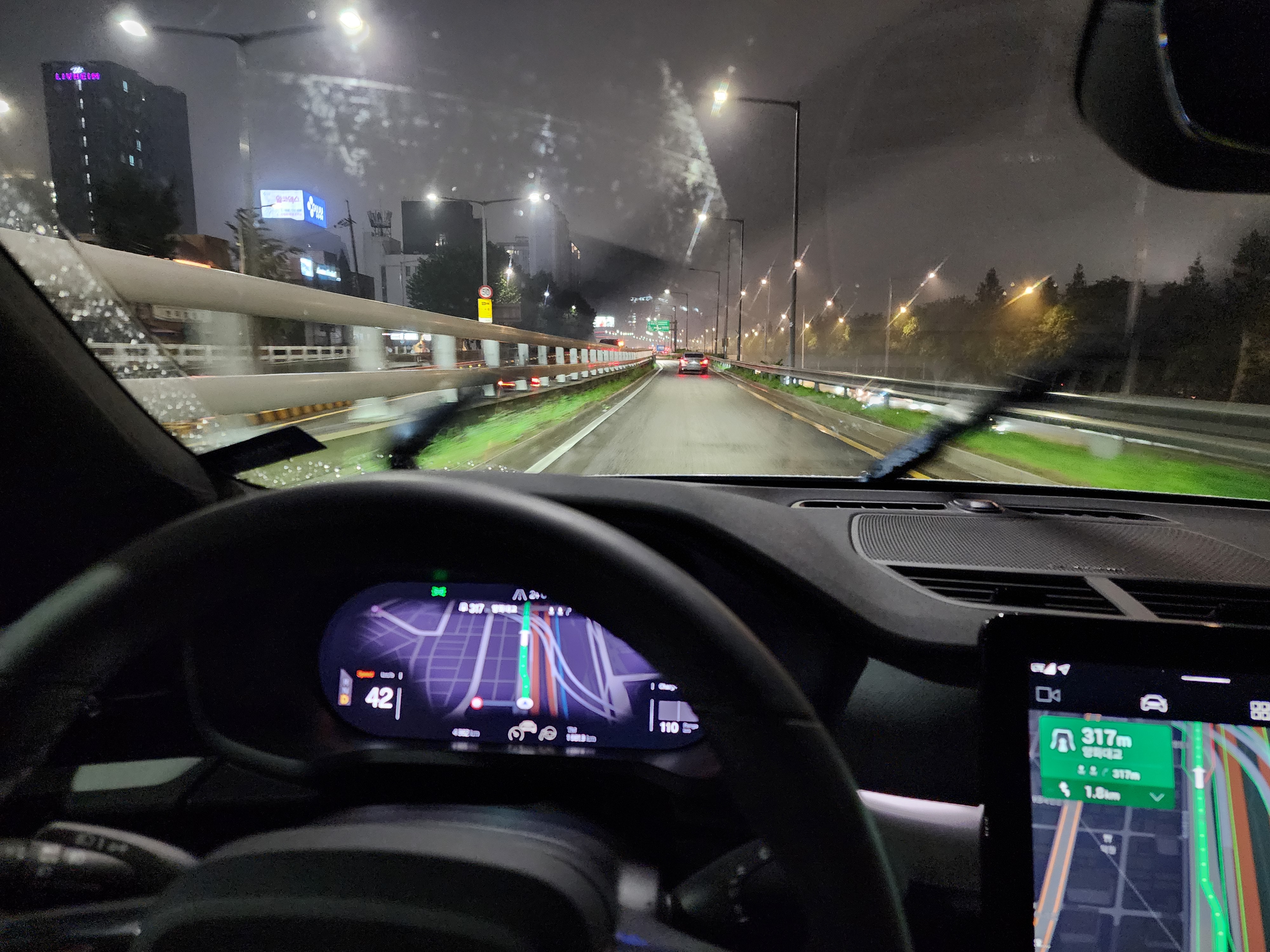 특히 이번 시승에는 폭우가 쏟아지는 7월 10일경에 서울에서 충남 예산까지 약 300km의 거리를 주행했는데, 전방 시야가 제한적이다 못 해 안 보이는 순간에도 믿고 운전할 수 있도록 빗길에 차를 꽉 잡아주는 능력을 보였다.