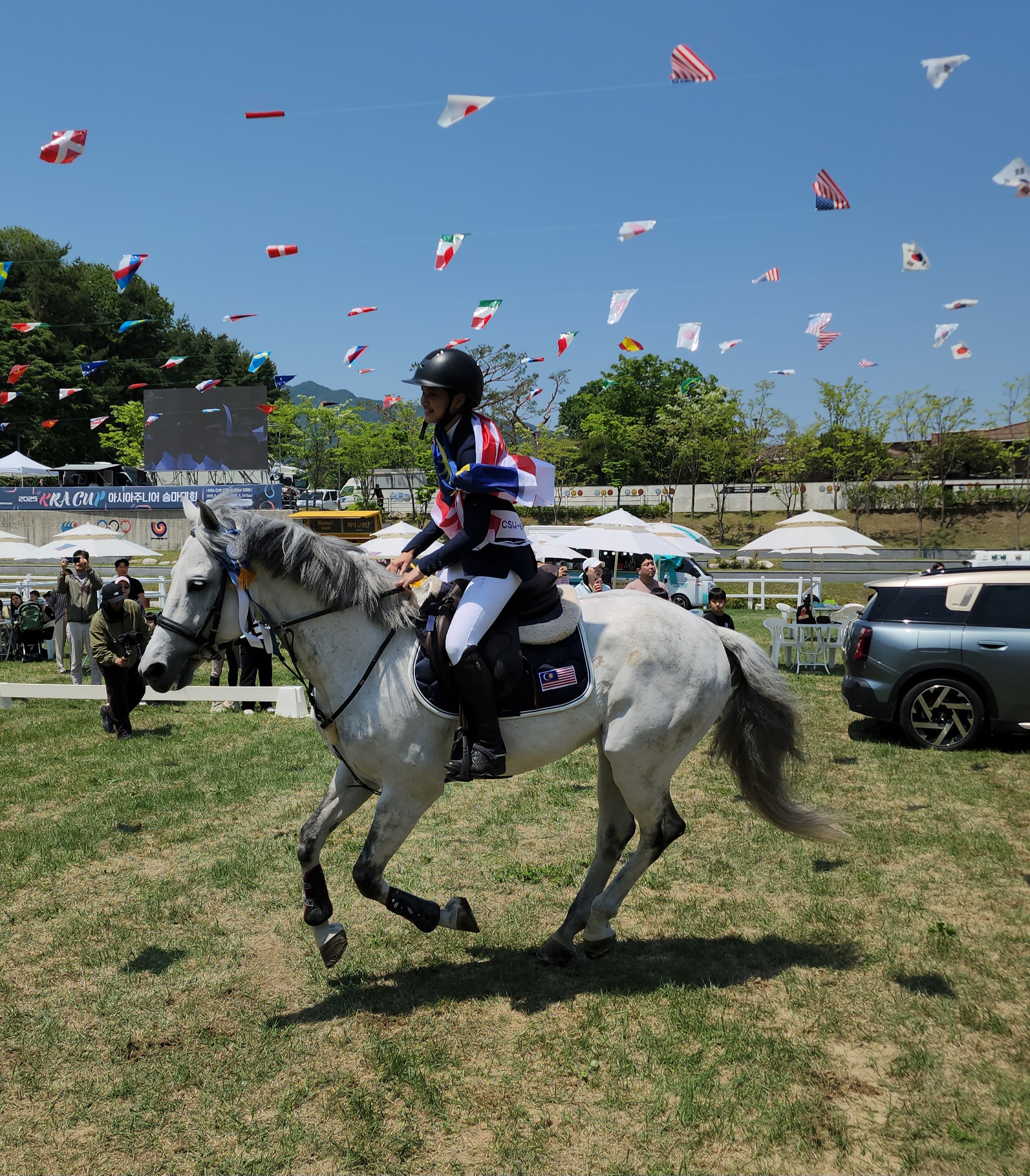 ▲ 아시아 주니어 승마대회 시상식에 함께 전시된 BMW X7